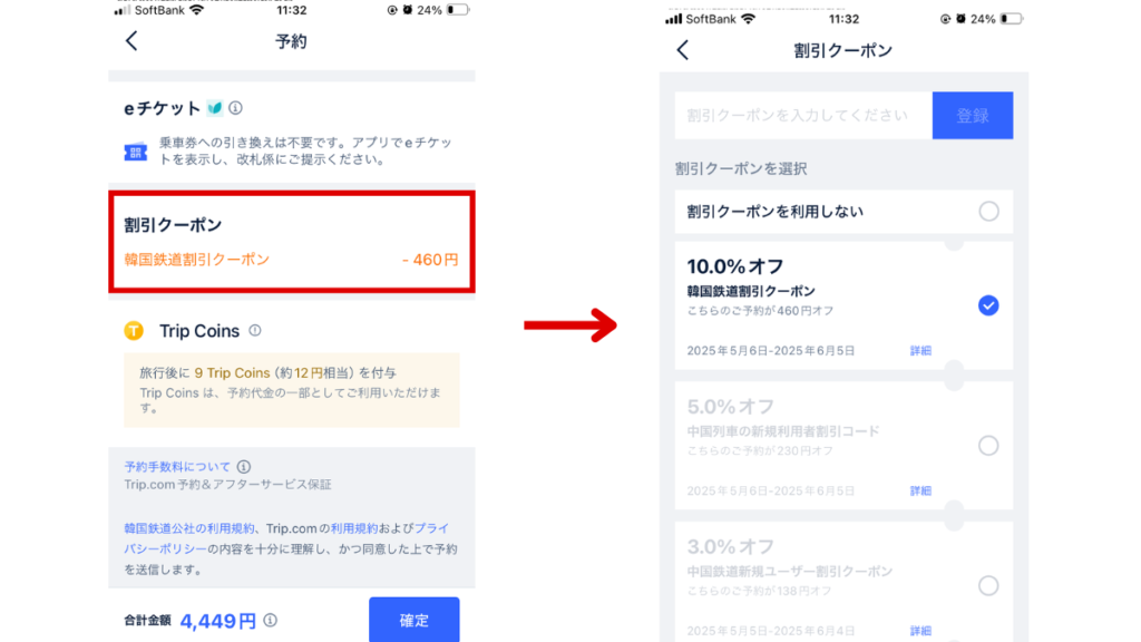 すると、割引クーポン一覧画面を確認することが出来ます。